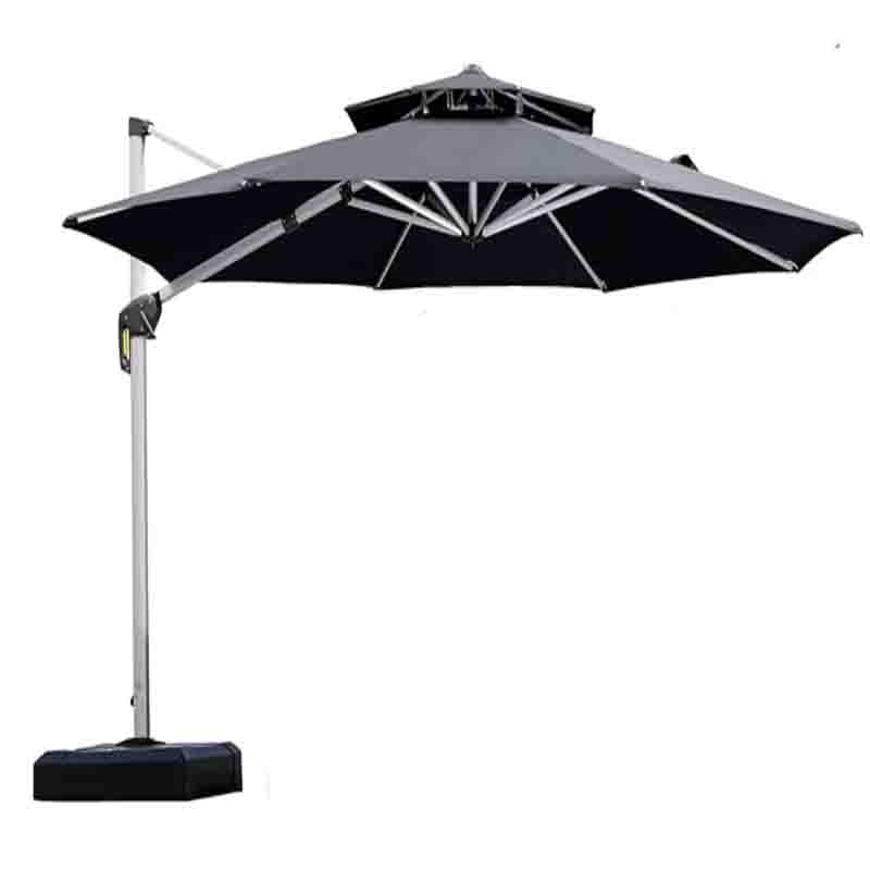 This: The parasol has a diameter of 12 feet, unique double canopy design,Applicable: Commercial and residential use, this paito parasol has a unique handle design and crank systemFeatures: There are 6 heights and angles to choose from, 360-degree rotation, which makes it easier to control the shade area