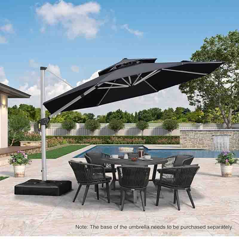 12 Feet Double Top Round Deluxe Patio Umbrella Offset Hanging Umbrella Outdoor Market Umbrella Garden Umbrella, Grey