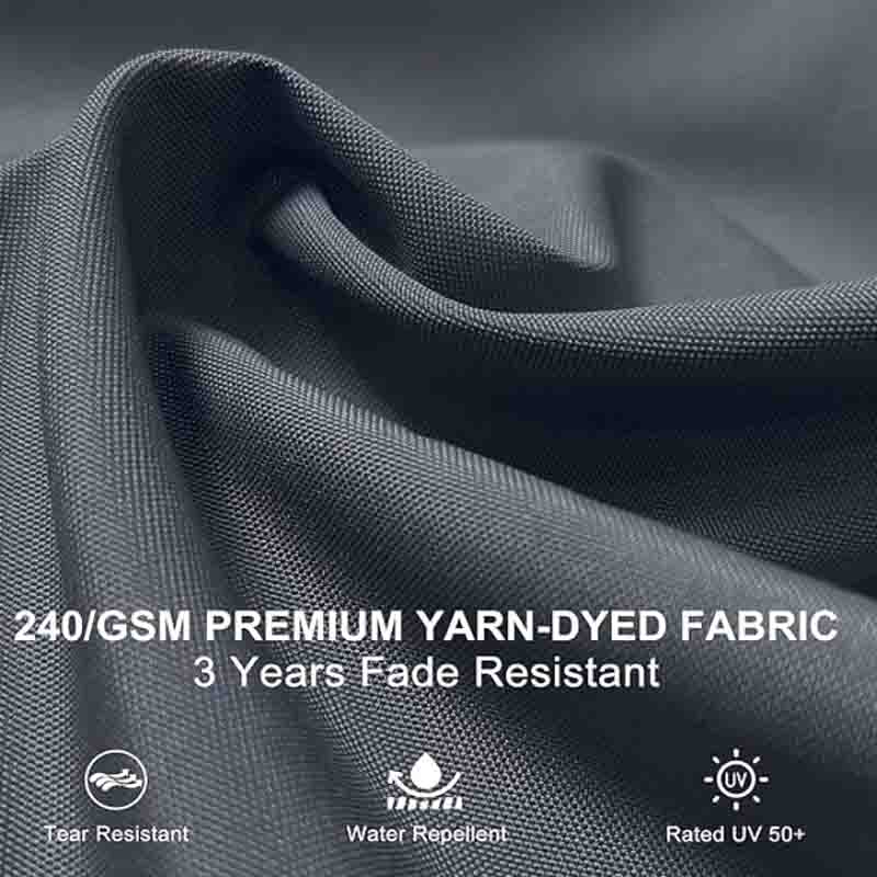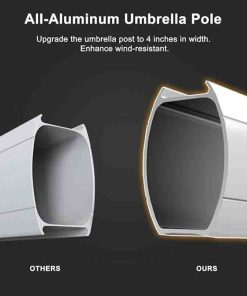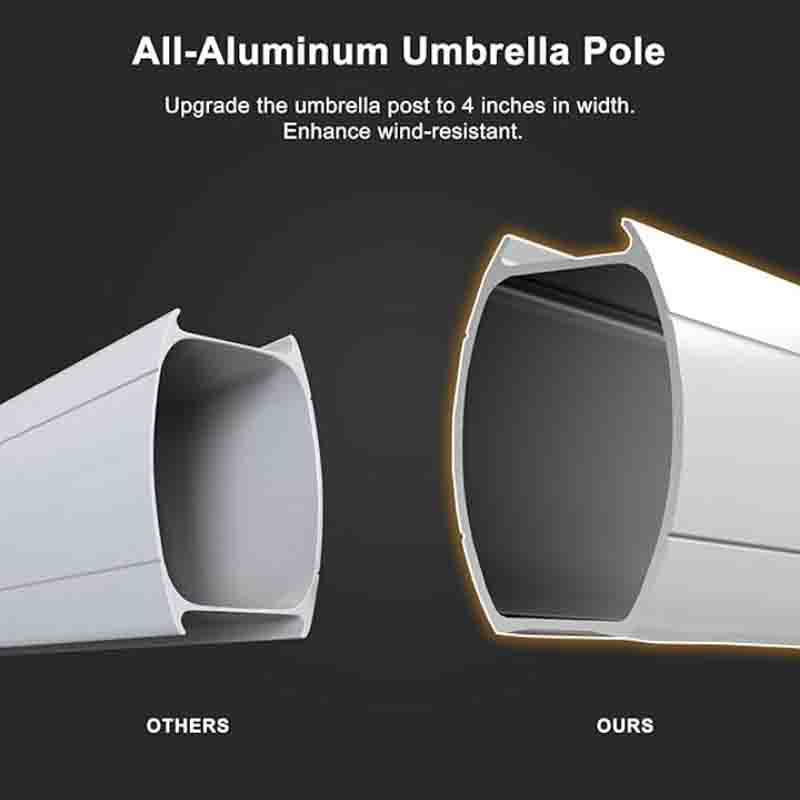 High Quality: 240/gsm yarn-dyed polyester fabric, UV-resistant, waterproof, and non-fadingAll-aluminum ribs and 8 heavy-duty ribs, anti-oxidation spray paint, long service life