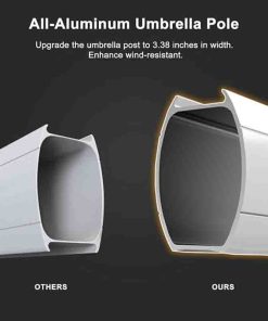 High Quality: 240/gsm yarn-dyed polyester fabric, UV-resistant, waterproof, and non-fading All-aluminum ribs and 8 heavy-duty ribs, anti-oxidation spray paint, long service life