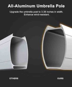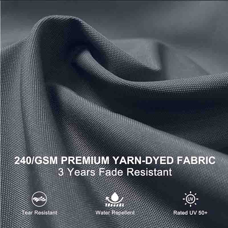 High Quality: 240/gsm yarn-dyed polyester fabric, UV-resistant, waterproof, and non-fading All-aluminum ribs and 8 heavy-duty ribs, anti-oxidation spray paint, long service life
