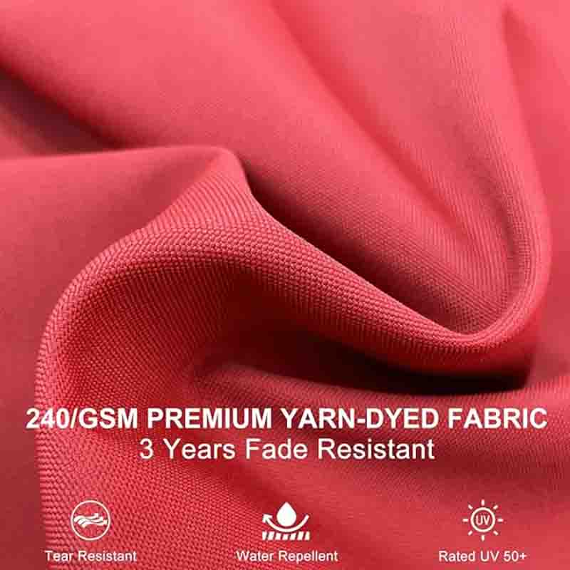High quality: 240/gsm yarn-dyed polyester fabric, UV-resistant, waterproof, no fading。All-aluminum ribs and 8 heavy-duty ribs, anti-oxidation spray paint, long service life。