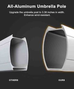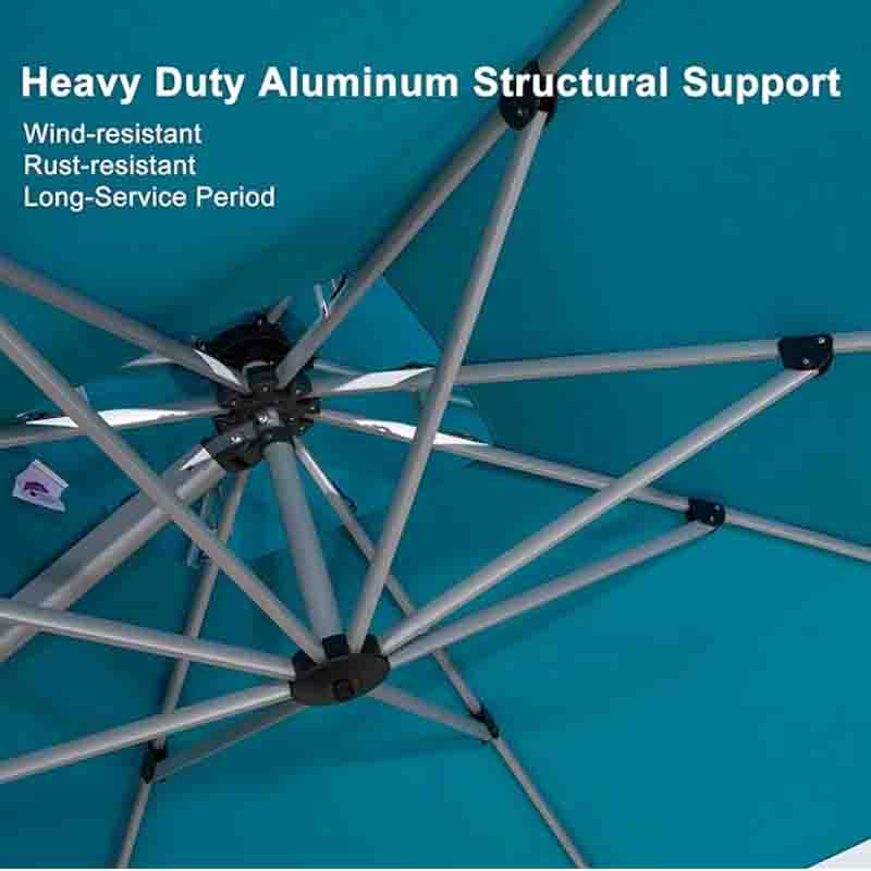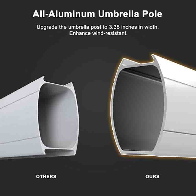 High quality: 240/gsm yarn-dyed polyester fabric, UV-resistant, waterproof, no fading。All-aluminum ribs and 8 heavy-duty ribs, anti-oxidation spray paint, long service life。