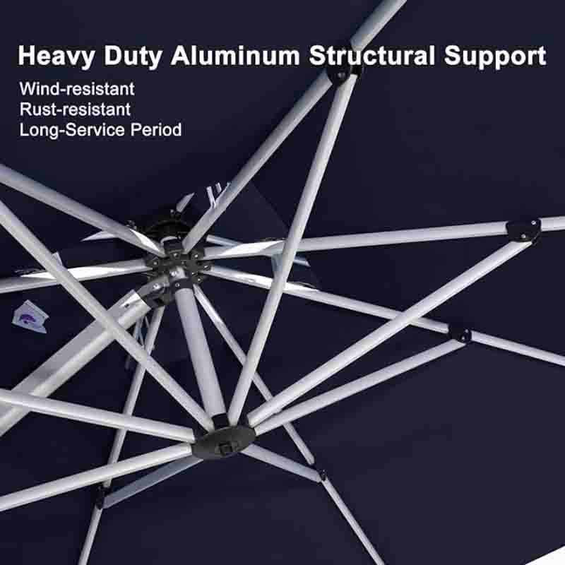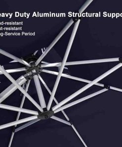 High quality: 240/gsm yarn-dyed polyester fabric, UV-resistant, waterproof, no fading。All-aluminum ribs and 8 heavy-duty ribs, anti-oxidation spray paint, long service life。