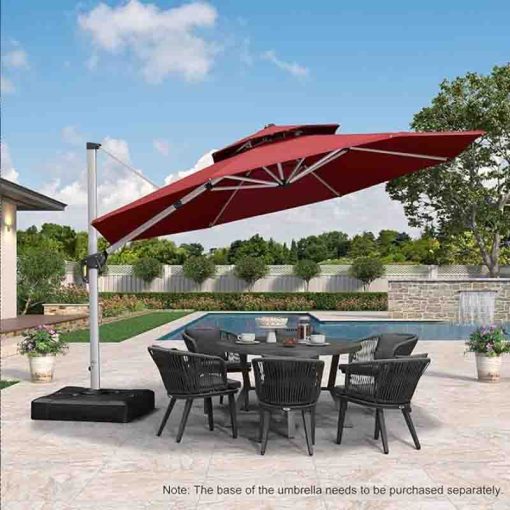 Patio Umbrella 12 Feet Double Top Round Deluxe Offset Hanging Umbrella Outdoor Market Umbrella Garden UmbrellaBrick Red