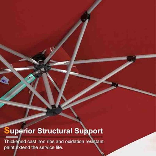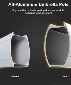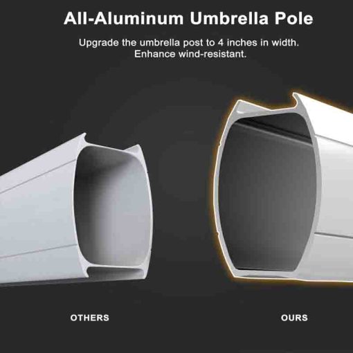 High Quality: 240/gsm yarn-dyed polyester fabric, UV-resistant, waterproof, and non-fadingAll-aluminum ribs and 8 heavy-duty ribs, anti-oxidation spray paint, long service life