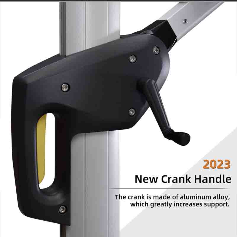This: The parasol has a diameter of 12 feet, unique double canopy design,Applicable: Commercial and residential use, this paito parasol has a unique handle design and crank system