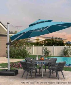 12 Feet Double Top Round Deluxe Patio Umbrella Offset Hanging Umbrella Outdoor Market Umbrella Garden Umbrella, Turquoise Blue